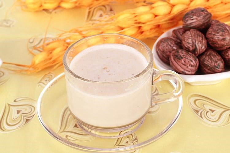 可将核桃仁加冰糖捣成“核桃泥”,密藏在瓷缸内,每次取两匙,用开水冲和,冲时盅中有一层白色液体浮起,这就是“核桃奶”,腴美可口。